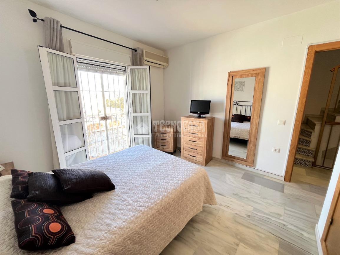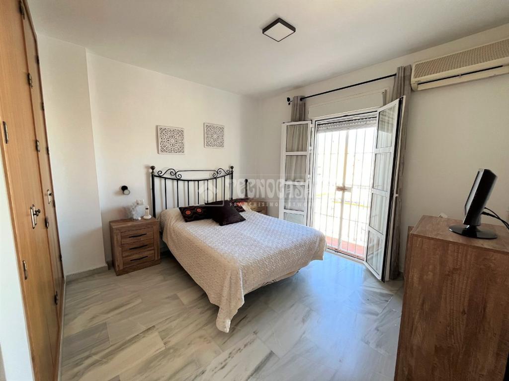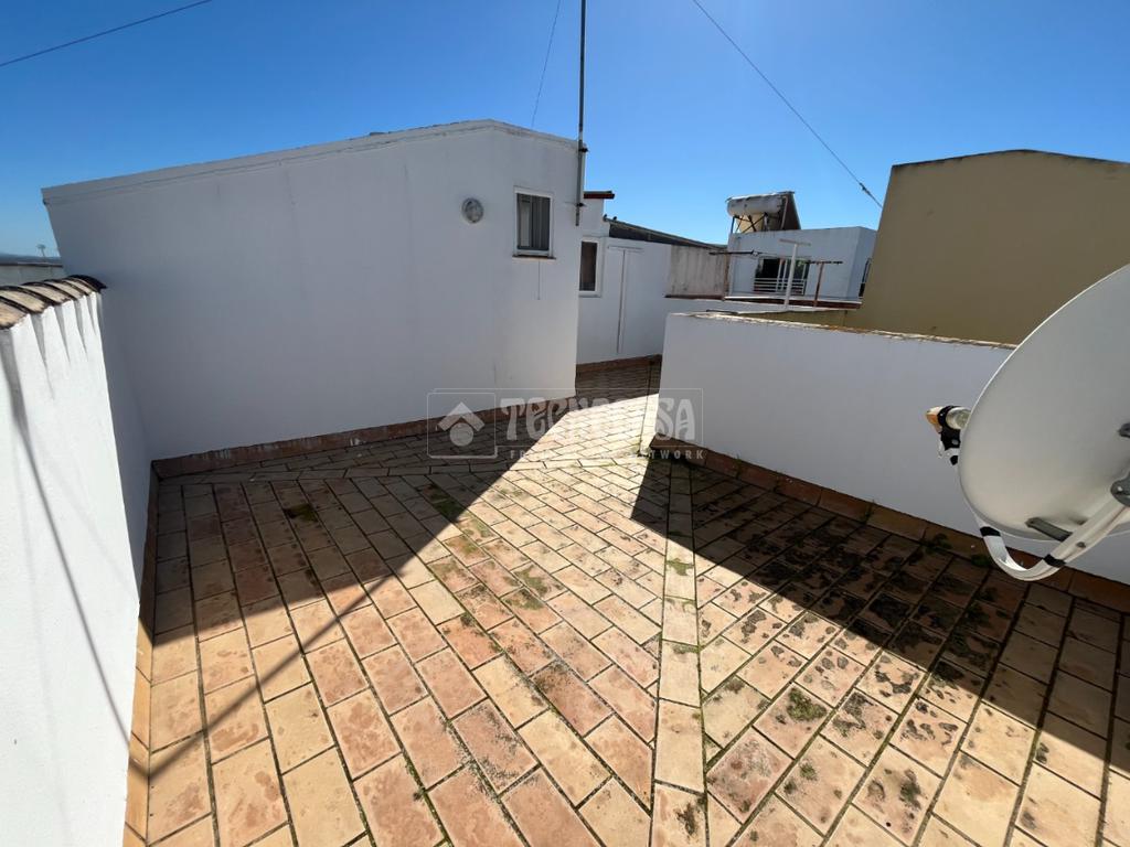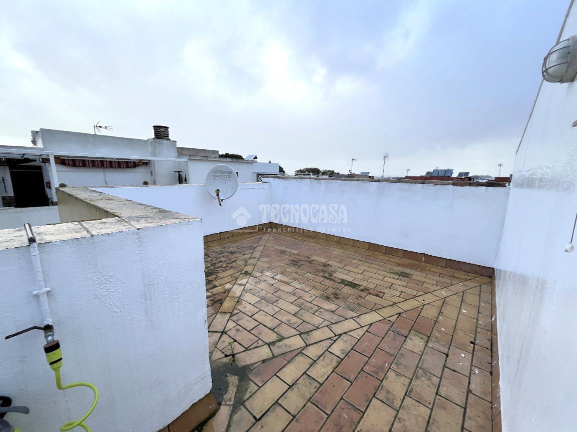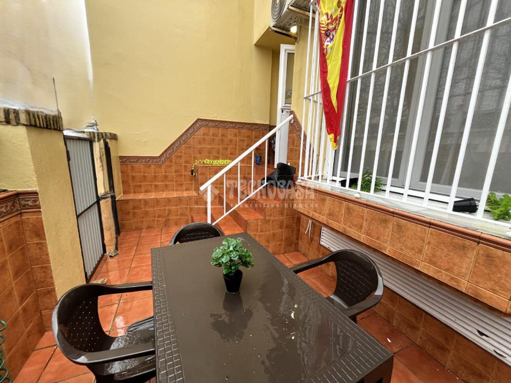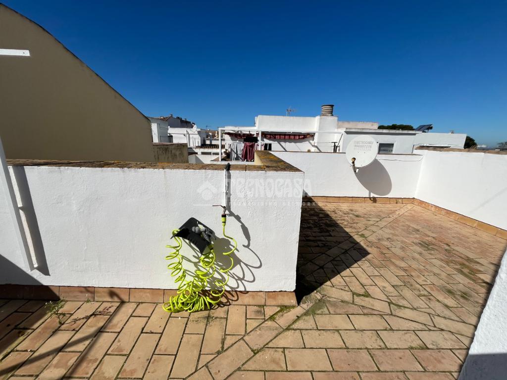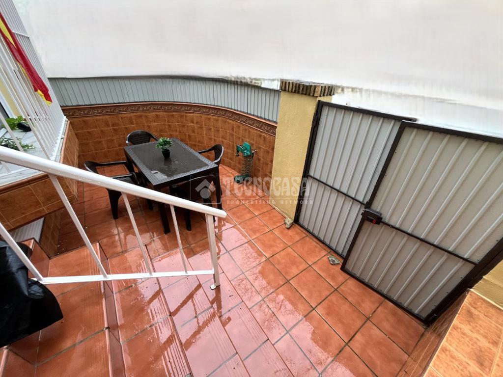 ZONA CAMPOSOTO. Vivienda adosada lista para entrar a vivir que consta de 105 m2 construidos y se distribuye en tres habitaciones, (una individual con armario empotrado y dos dobles) La principal dispone de aire acondicionado y balcón. Un cuarto de baño completo con placa de ducha y ventana, aseo con ventana, cocina amplia con acceso a un patio cerrado con lavadero, salón amplio con aire acondicionado, una alacena bajo la escalera, porche delantero y una gran azotea en la ultima planta.