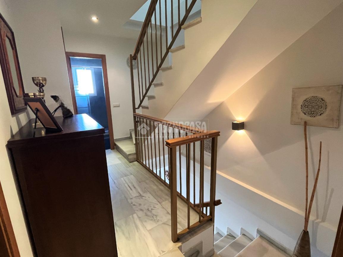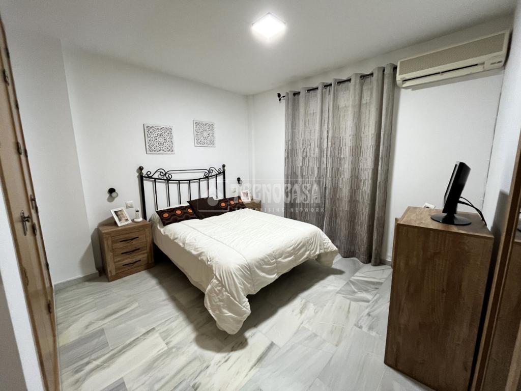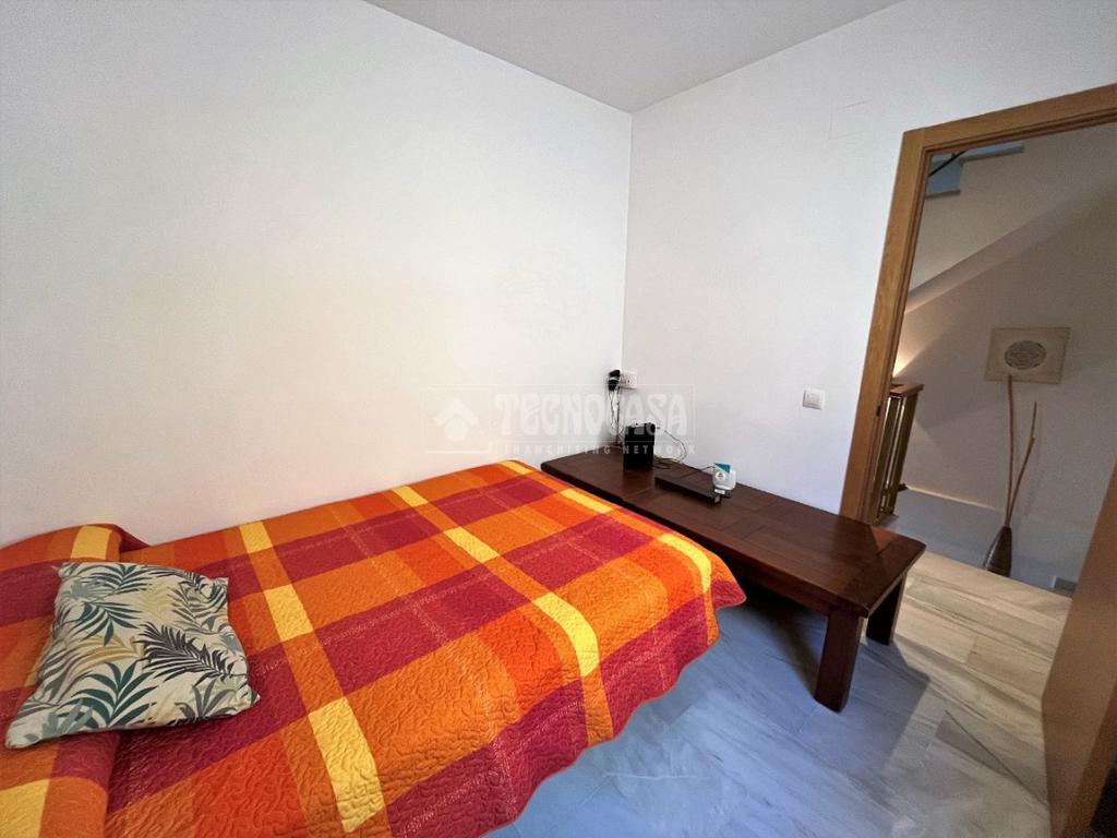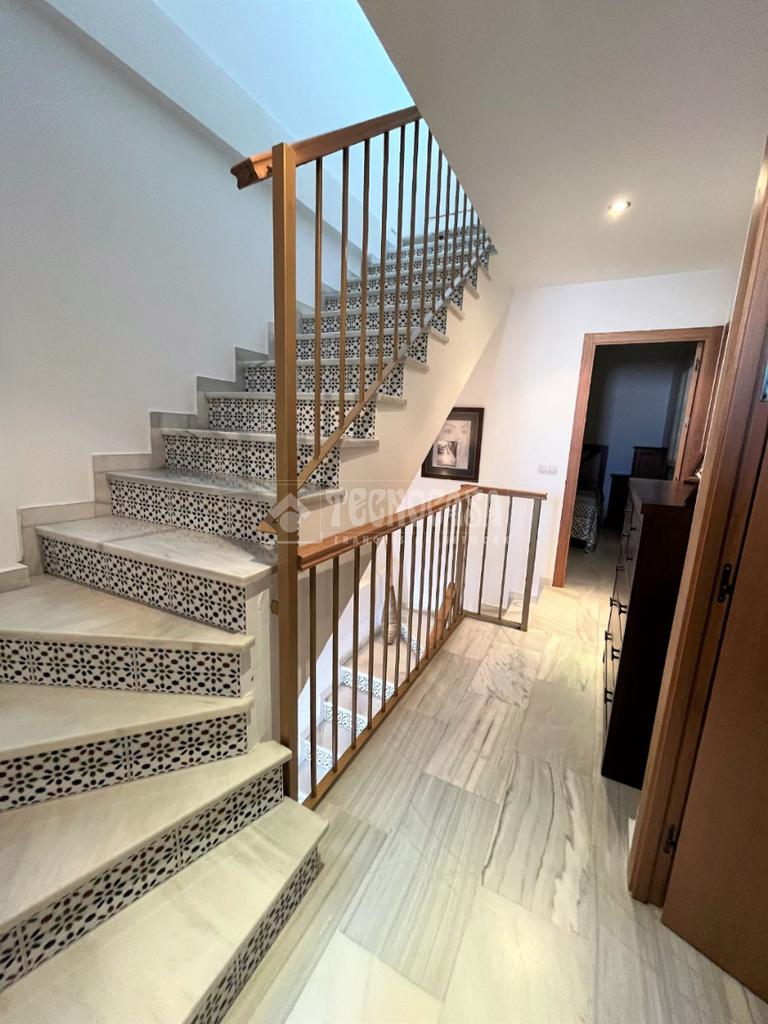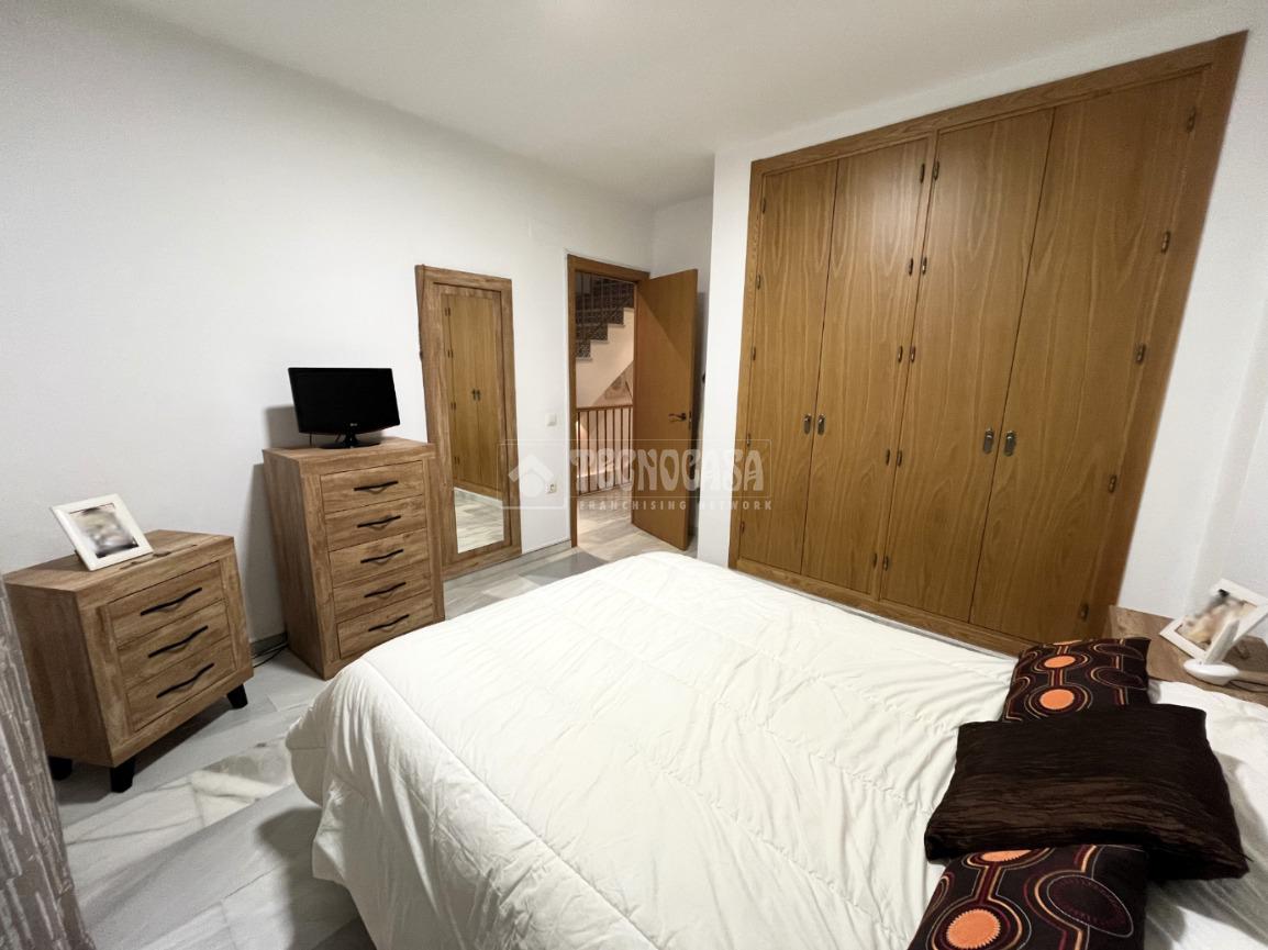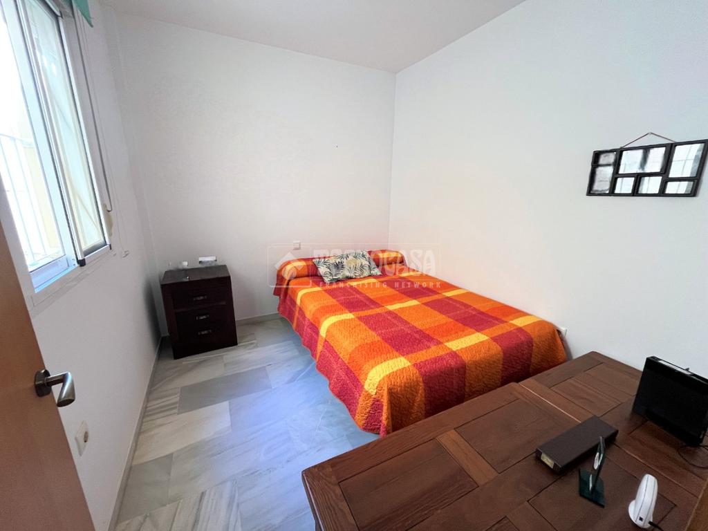 ZONA CAMPOSOTO. Vivienda adosada lista para entrar a vivir que consta de 105 m2 construidos y se distribuye en tres habitaciones, (una individual con armario empotrado y dos dobles) La principal dispone de aire acondicionado y balcón. Un cuarto de baño completo con placa de ducha y ventana, aseo con ventana, cocina amplia con acceso a un patio cerrado con lavadero, salón amplio con aire acondicionado, una alacena bajo la escalera, porche delantero y una gran azotea en la ultima planta.