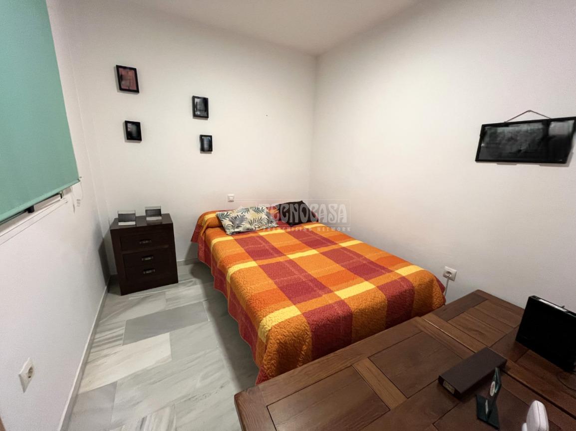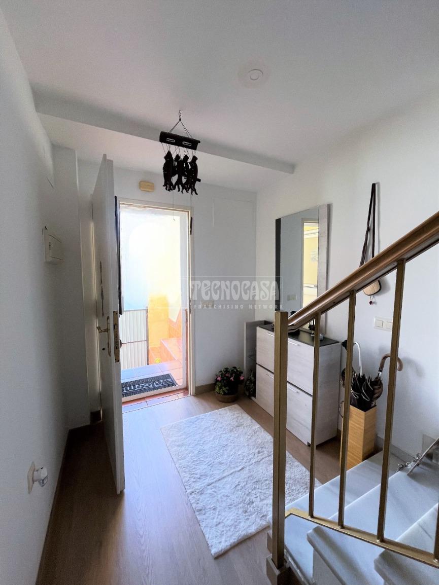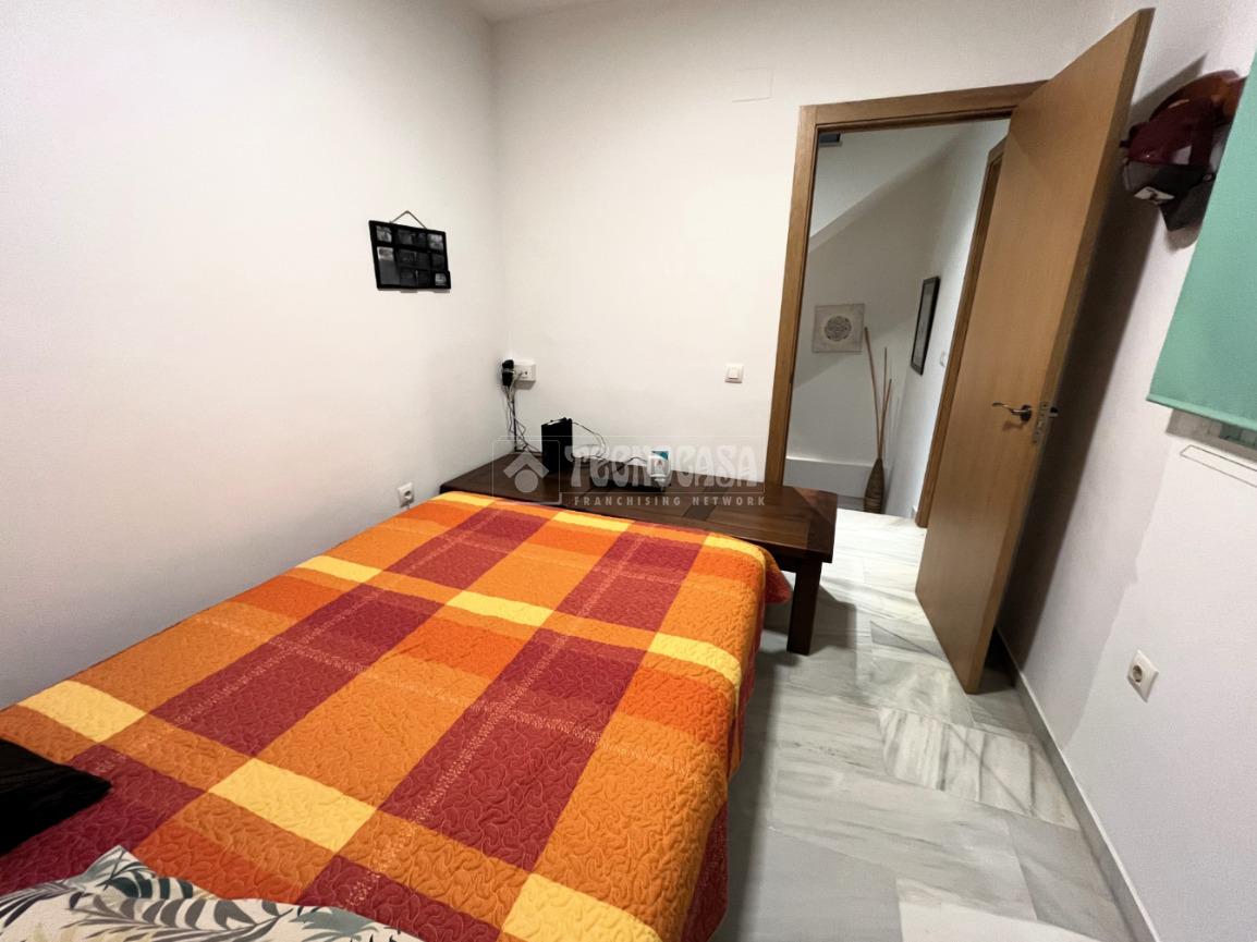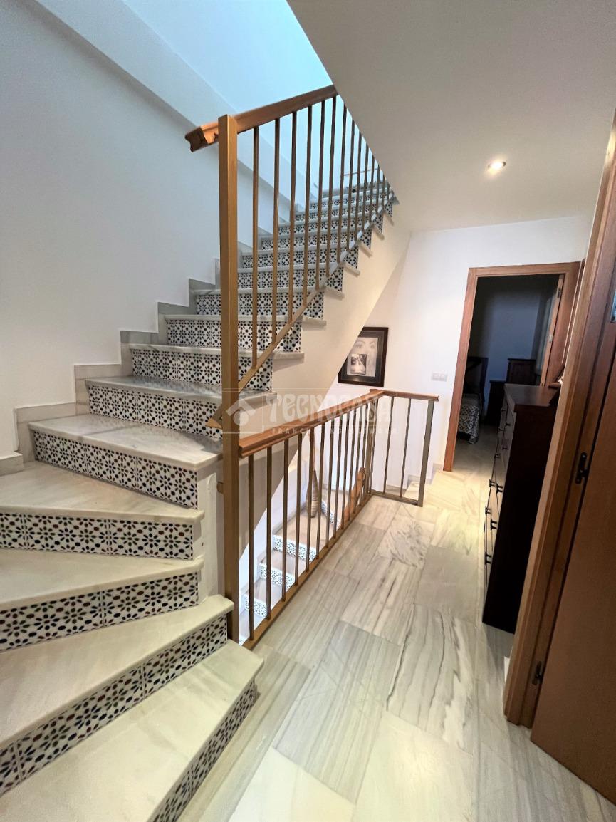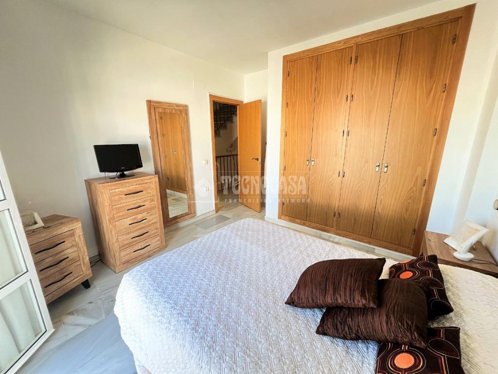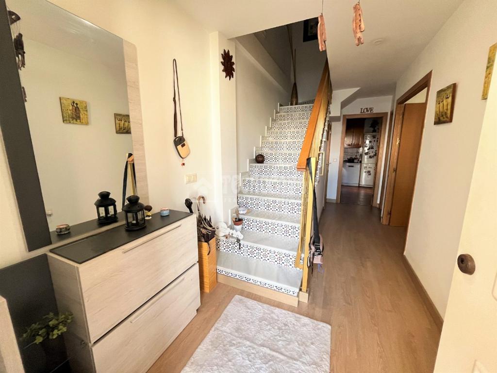 ZONA CAMPOSOTO. Vivienda adosada lista para entrar a vivir que consta de 105 m2 construidos y se distribuye en tres habitaciones, (una individual con armario empotrado y dos dobles) La principal dispone de aire acondicionado y balcón. Un cuarto de baño completo con placa de ducha y ventana, aseo con ventana, cocina amplia con acceso a un patio cerrado con lavadero, salón amplio con aire acondicionado, una alacena bajo la escalera, porche delantero y una gran azotea en la ultima planta.