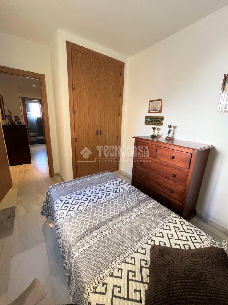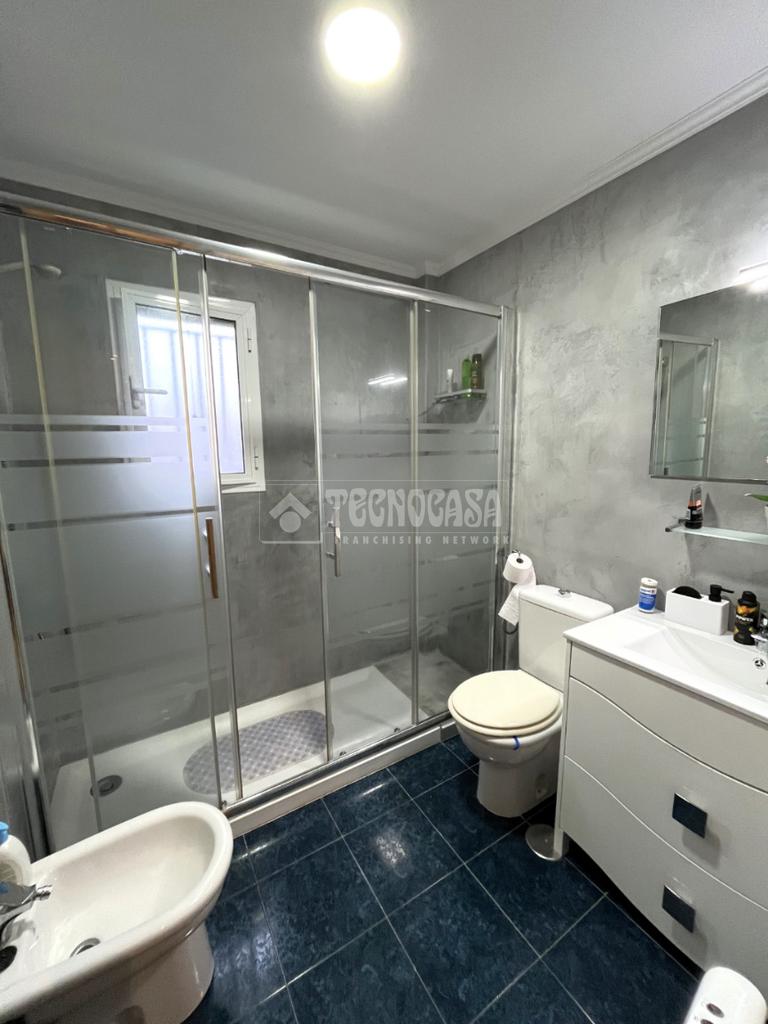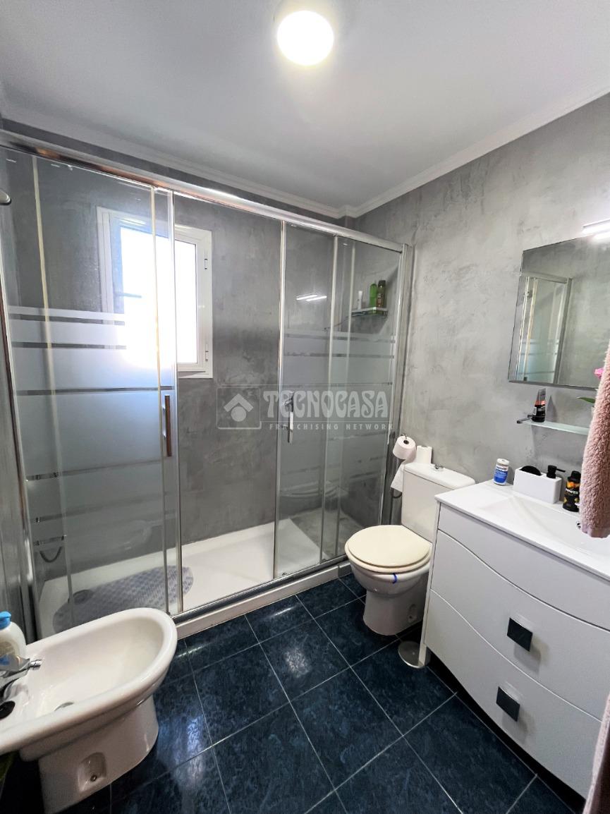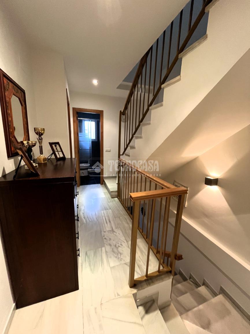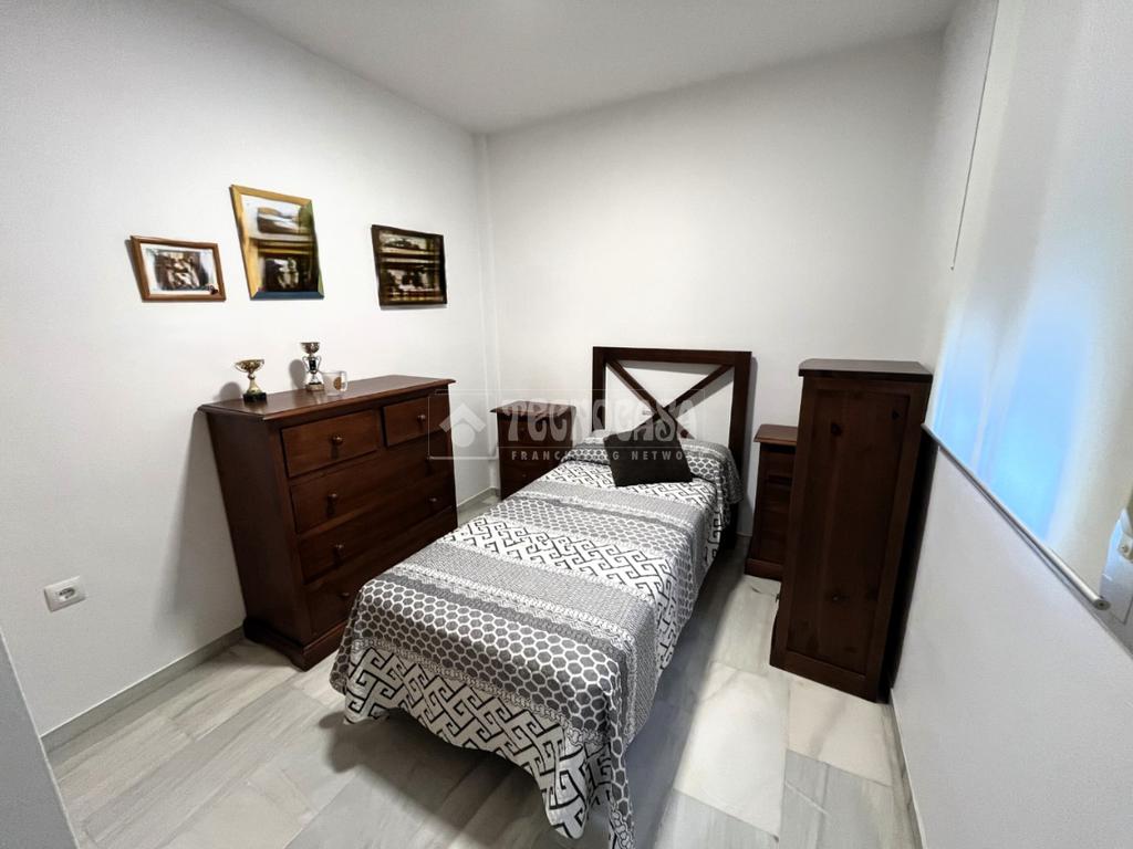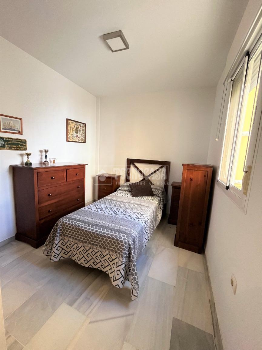 ZONA CAMPOSOTO. Vivienda adosada lista para entrar a vivir que consta de 105 m2 construidos y se distribuye en tres habitaciones, (una individual con armario empotrado y dos dobles) La principal dispone de aire acondicionado y balcón. Un cuarto de baño completo con placa de ducha y ventana, aseo con ventana, cocina amplia con acceso a un patio cerrado con lavadero, salón amplio con aire acondicionado, una alacena bajo la escalera, porche delantero y una gran azotea en la ultima planta.