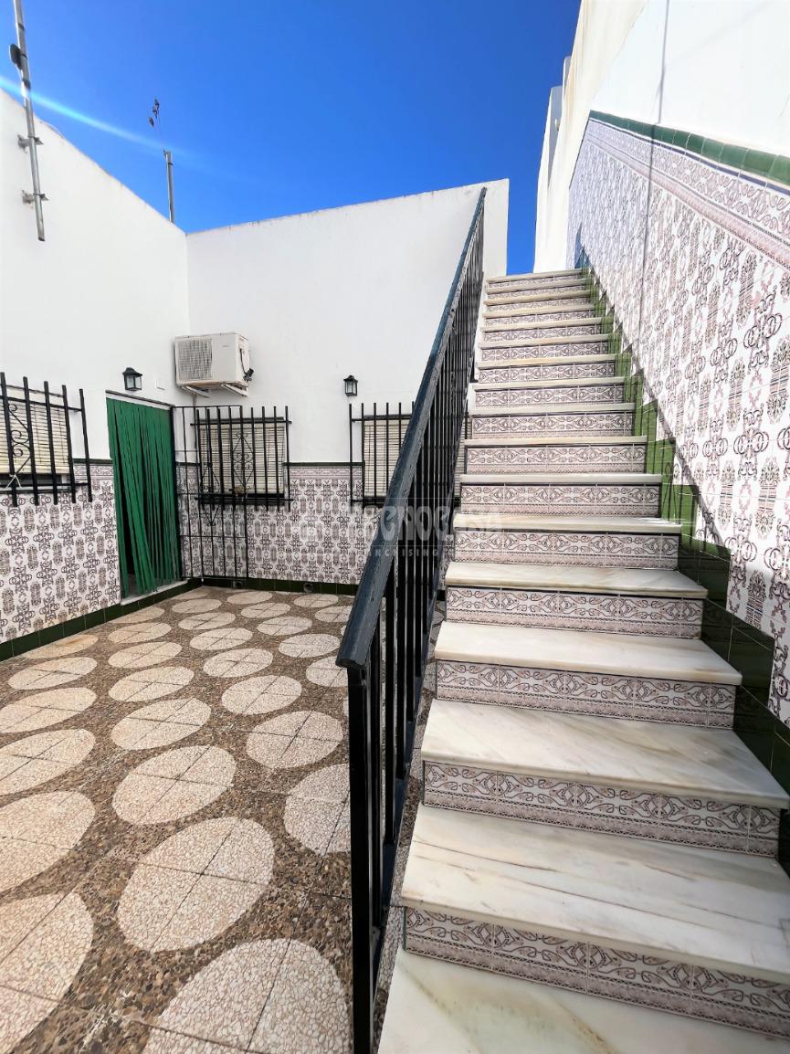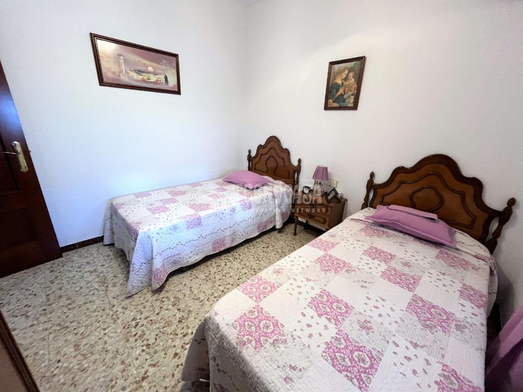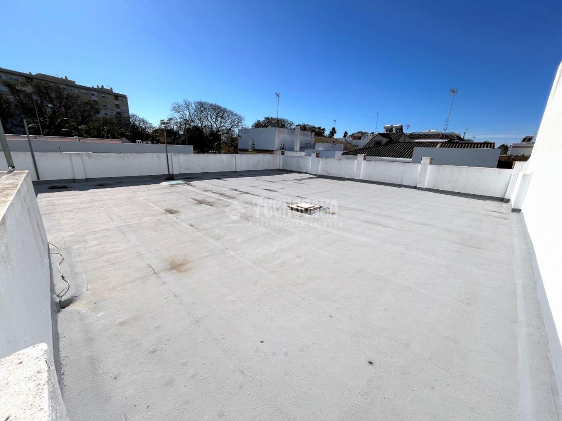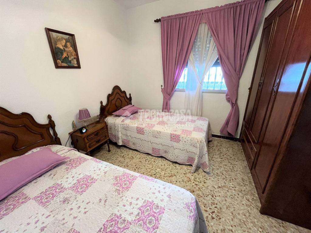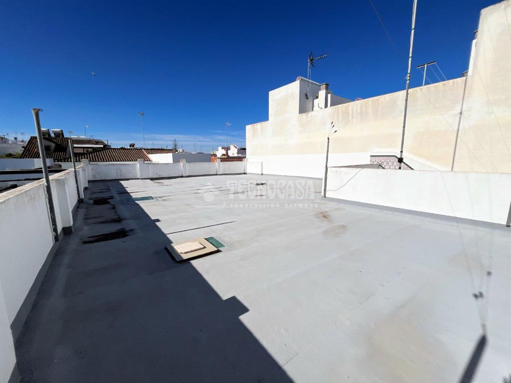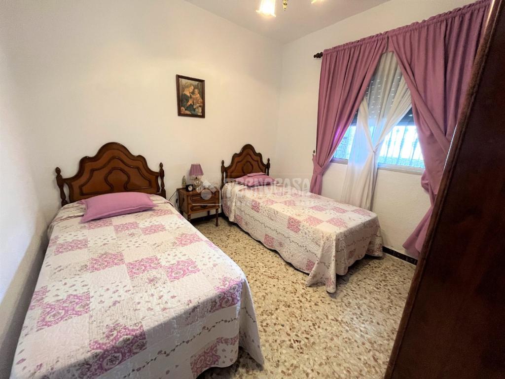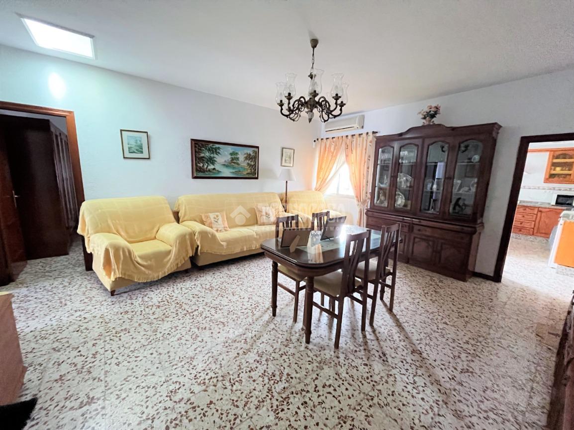 ZONA CAMPOSOTO. Casa adosada que consta de 139 m2 construidos, dispone de porche delantero, tres dormitorios amplios, una sala de estar, un cuarto de baño completo con placa de ducha y ventana, salón muy espacioso y luminoso, cocina amplia con acceso a un patio privado, con una pequeña despensa, una buhardilla techada y una escalera que sube hacia una gran azotea privada. Dispone de garaje con espacio para dos coches de 20 m2 y armario empotrado para almacenaje.