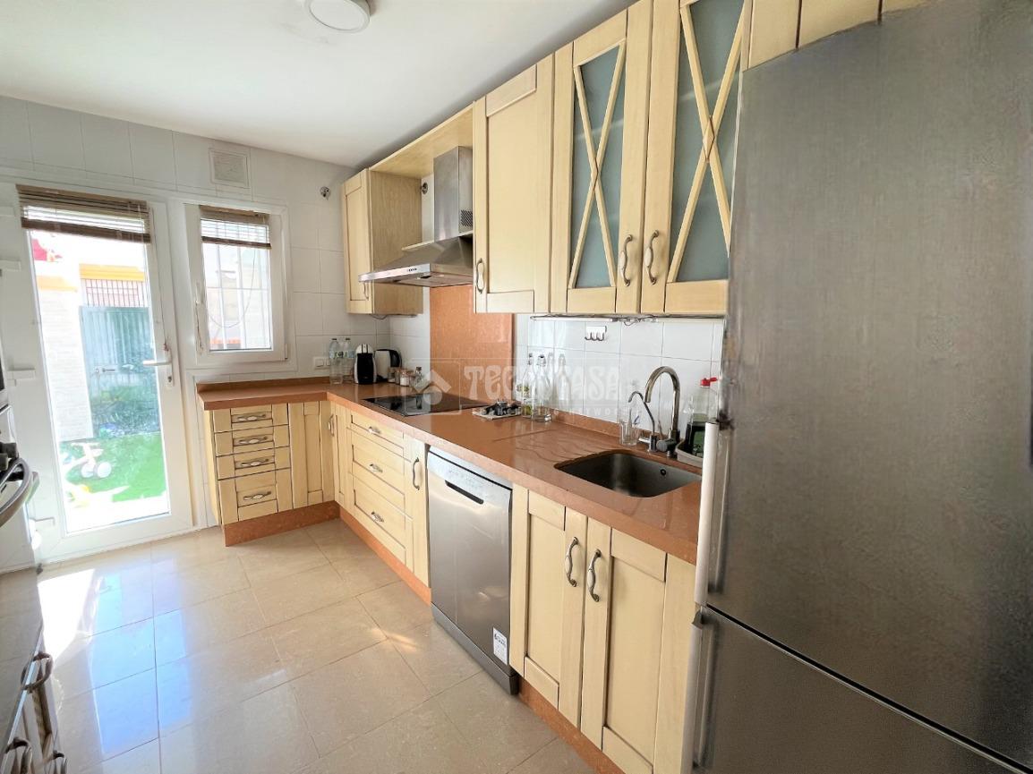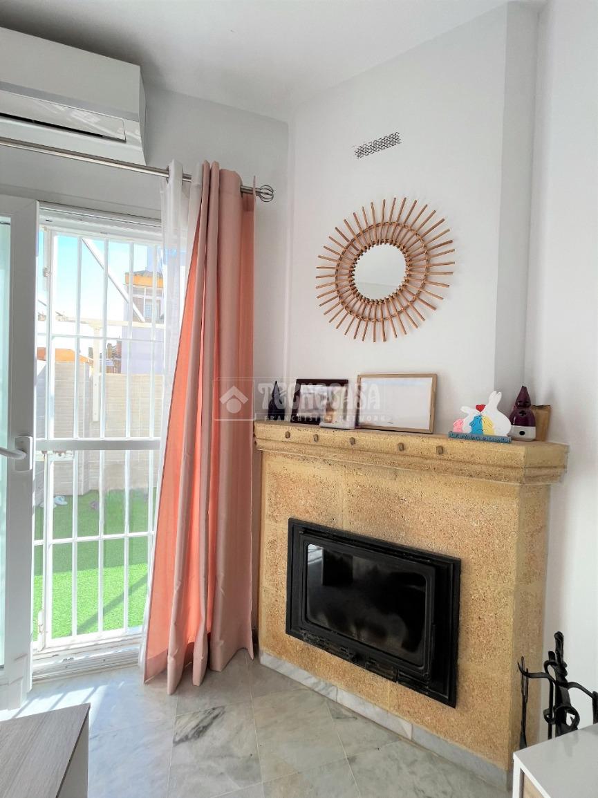 ZONA URBIS. Vivienda adosada totalmente reformada y lista para entrar a vivir de 114 m2 construidos, la planta baja consta de porche delantero semicubierto para uso de garaje (con vado), un dormitorio amplio, un cuarto de baño con placa de ducha, salón comedor amplio y muy luminoso con chimenea, cocina independiente equipada con una despensa y gran patio privado con toldo corredero, barbacoa y una zona de servicio (acceso por la cocina y por el salón). En la primera planta contamos con un cuarto de baño completo con bañera, dos habitaciones individuales (uno con armario empotrado), y una habitación matrimonial con acceso a un balcón abierto, armario empotrado y cuarto de baño privado completo con placa de ducha.